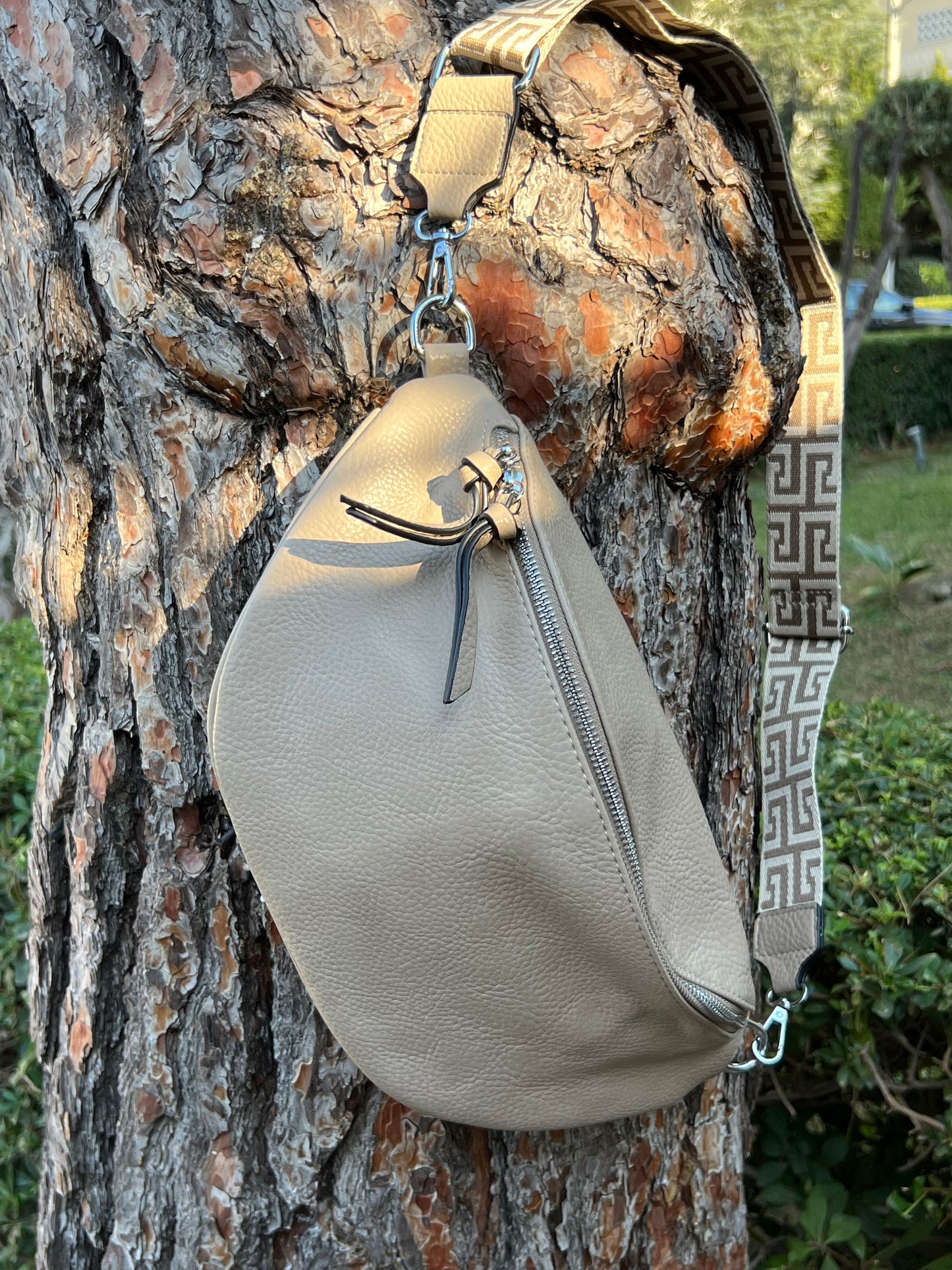 Ανακαλύψτε το στυλ και την άνεση με την Athene bum bag, ιδανική για κάθε περίσταση! Διαθέτει έναν μοναδικό υφασμάτινο ιμάντα, διακοσμημένο με κομψούς μαίανδρους, που προσθέτει μία αίσθηση πολυτέλειας και μοναδικότητας. Είτε για μια βόλτα στην πόλη είτε για μια εκδρομή είναι η τέλεια επιλογή.