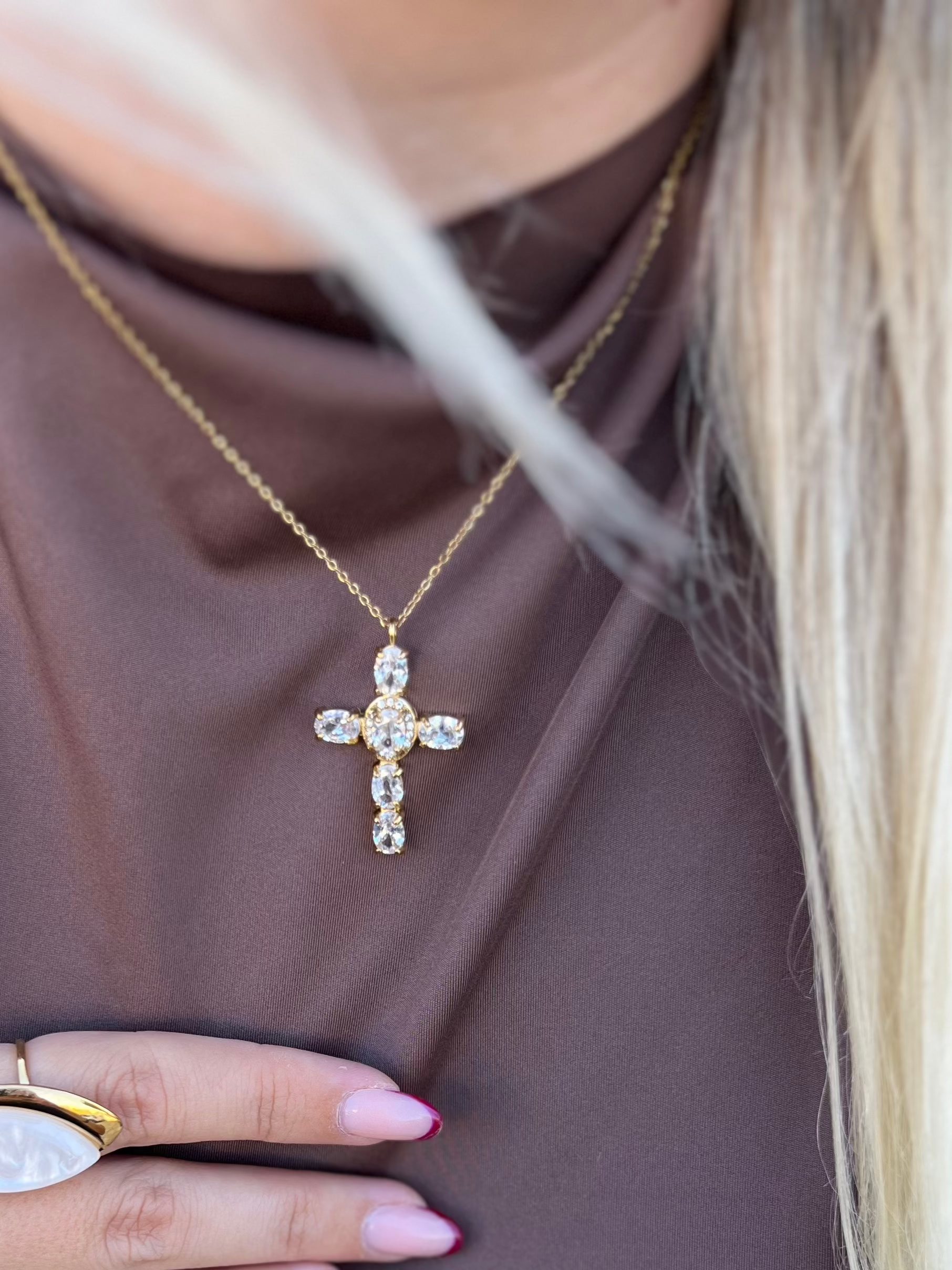 Ένας κομψός σταυρός από υψηλής ποιότητας ανοξείδωτο ατσάλι, διακοσμημένος με λαμπερά gemstones που προσθέτουν μοναδική λάμψη. Σχεδιασμένος για να αντέχει στον χρόνο, συνδυάζει διαχρονικό στυλ με μοντέρνα αισθητική, καθιστώντας τον ιδανικό τόσο για καθημερινή χρήση όσο και για ιδιαίτερες περιστάσεις.