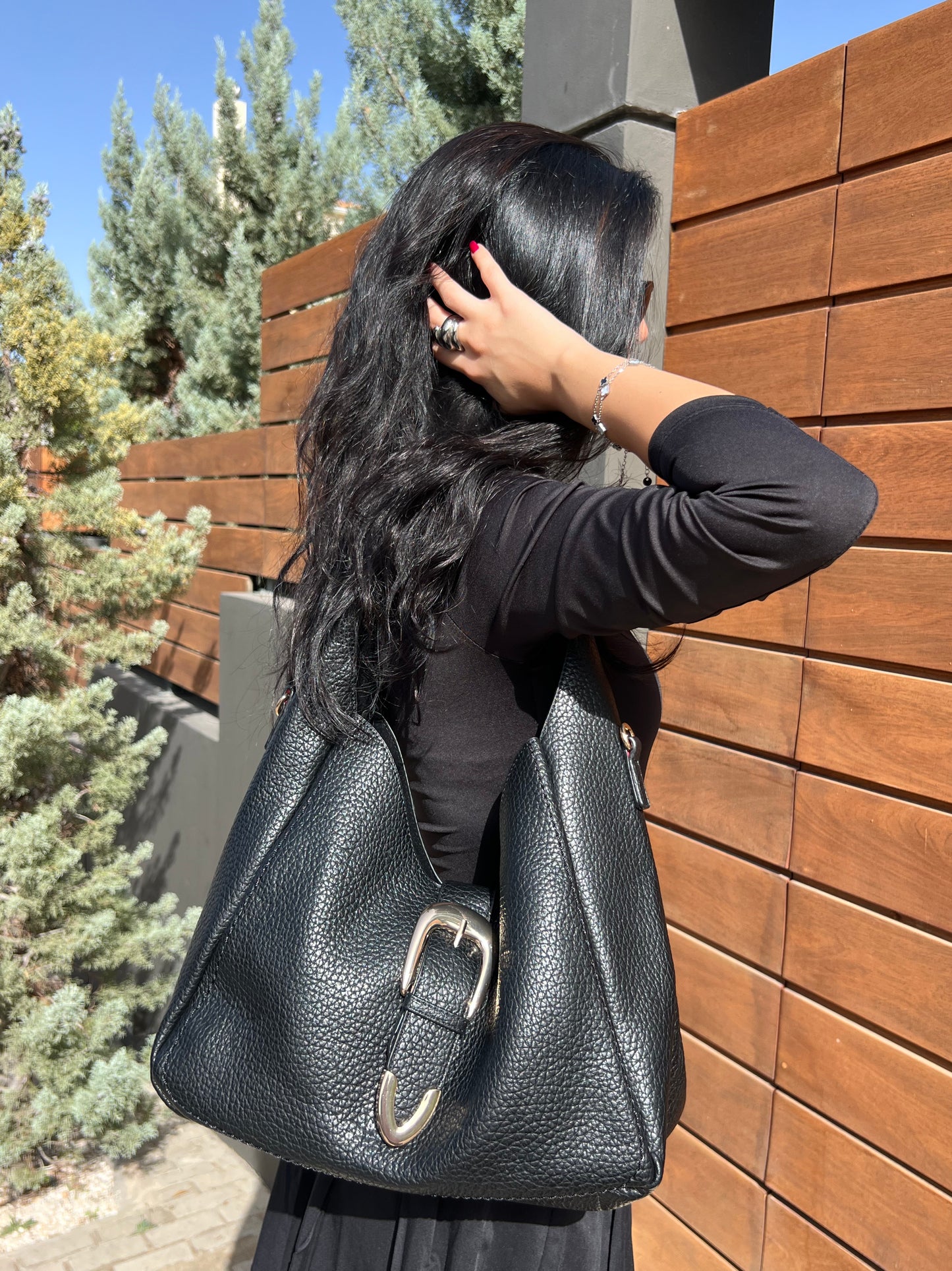 Κομψή τσάντα, που διαθέτει μοντέρνα μεταλλική αγκράφα και πρακτικό εσωτερικό τσαντάκι για επιπλέον οργάνωση. Το δερμάτινο λουρί της προσφέρει ευελιξία, επιτρέποντας να τη φορέσετε τόσο χιαστί όσο και στον ώμο.