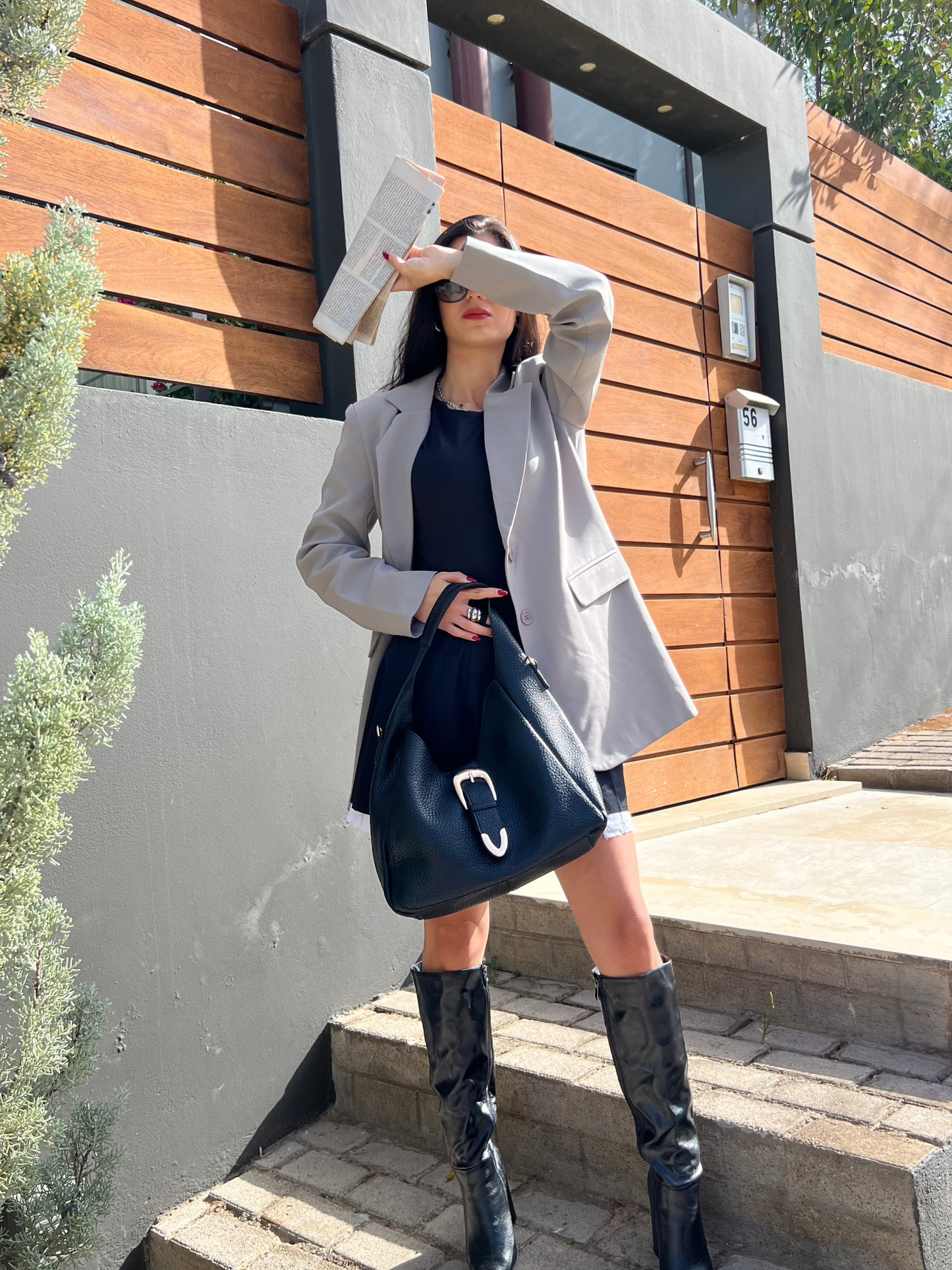 Oversized blazer, που συνδυάζει την άνεση με την κομψότητα. Με τη χαλαρή γραμμή του και την κλασική του αισθητική, είναι ιδανικό για να δημιουργήσετε μοντέρνα και εκλεπτυσμένα σύνολα, από το γραφείο μέχρι τις εξόδους σας.